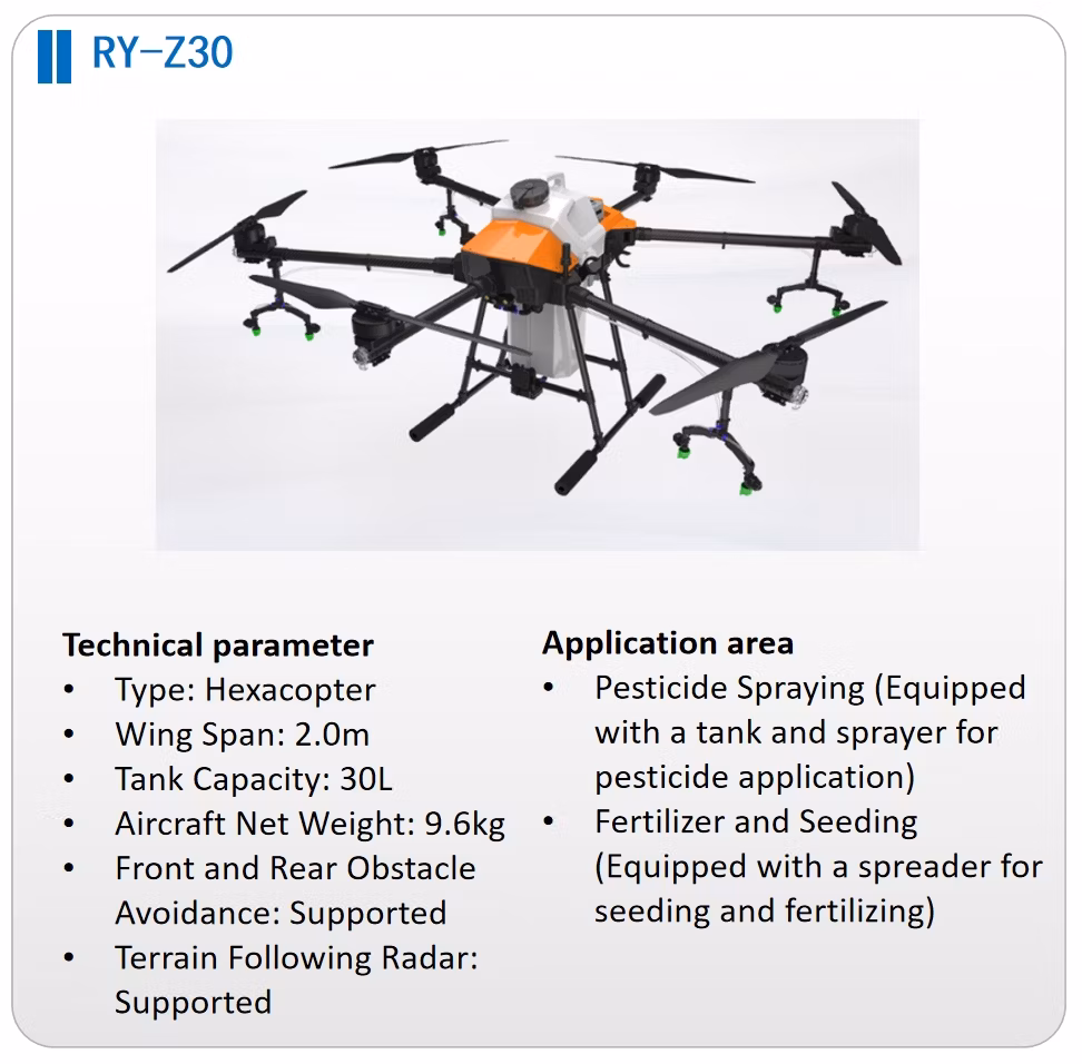 Il nostro drone agricolo è progettato per gestire 30-50 litri di pesticidi, dotato di radar a simulazione del suolo, radar per evitare ostacoli, doppi moduli RTK, una telecamera HD con sospensione cardanica e vanta un grado di impermeabilità IP67. | Z40 | Z60 | ||